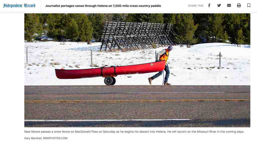 Along the way, he faced multiple obstacles, as noted on his blog where he wrote dispatches from his journey: “I was dodging barges and container ships. Startling grizzlies. Being bumped hard by a bull shark. Being escorted by dolphins. Seeing curious alligators. And capsizing twice.” He said, “I had a near-death experience on a little tributary of the Clark Fork River called the St. Regis River. It’s a small, glacial river, so it’s freezing; even in the middle of summertime, you can get hypothermia. As I came around a turn, two big trees were blocking the whole river. I crashed into the side before I went under, scraping my way out, but I lost everything that was in the canoe. I thought I might die, but then I looked up and saw somebody there to save me. It was an amazing experience.”