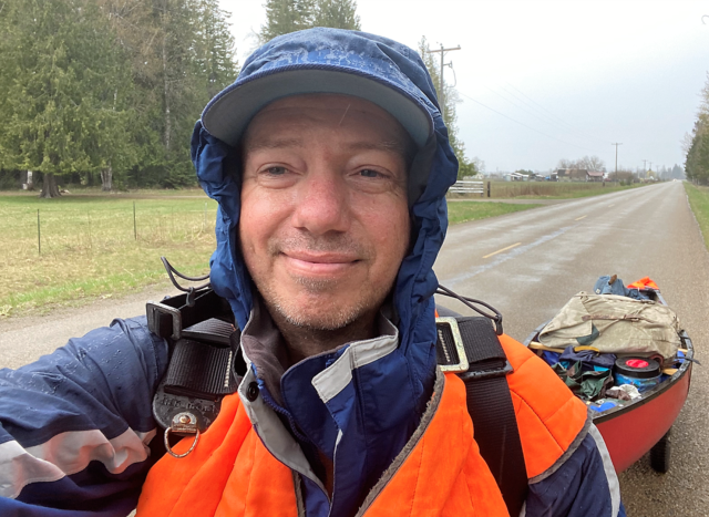 Moore, 48, made his way over the Continental Divide near Helena on Saturday toting a canoe filled with his belongings. The two-day trek over MacDonald Pass amid a mid-May winter blast and grizzly bear encounter comes nearly three months after he started his journey from the West Coast – a 7,500-mile adventure he hopes will culminate two years from now when he paddles around the Statue of Liberty in New York.