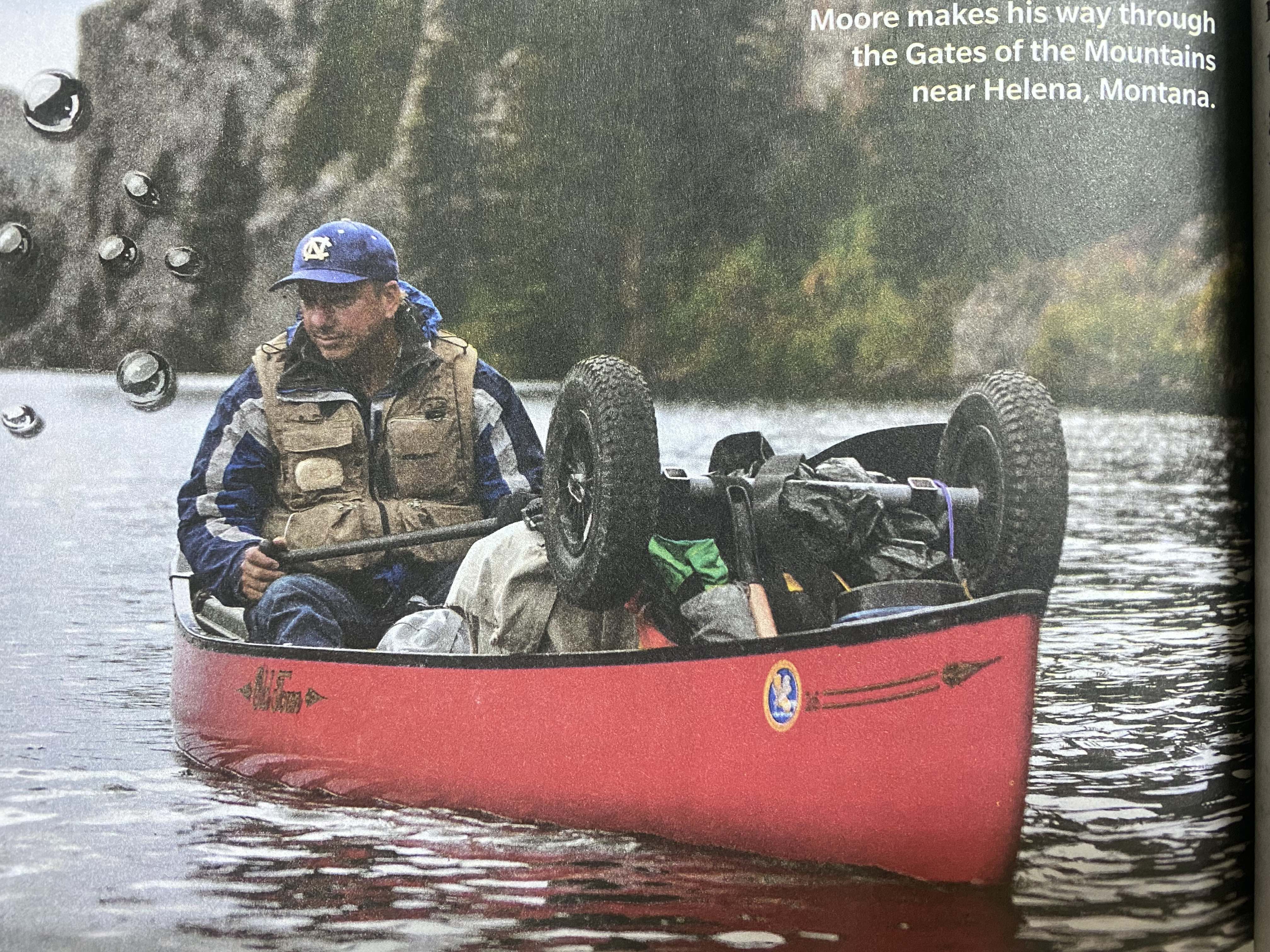 ON FEBRUARY 9, 2020, Moore sets out from Astoria, Oregon, at the mouth of the Columbia River. He packs a tent, a sleeping bag, jugs of water, and a bucket of freeze-dried meals, then points his bright red 16-foot Old Town canoe upstream.